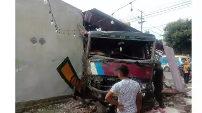 Simalungun, Sumatera Utara - Kecelakaan kembali terjadi di Kabupaten Simalungun, Sumatera Utara. Satu unit truk Fuso seruduk rumah di Jalan Umum KM 09-10, tepatnya di Kelurahan Sinaksak, Kecamatan Tapian Dolok, Kabupaten Simalungun, Sumatera Utara, Jumat (13/1/2023) sekira pukul 04.00 WIB.