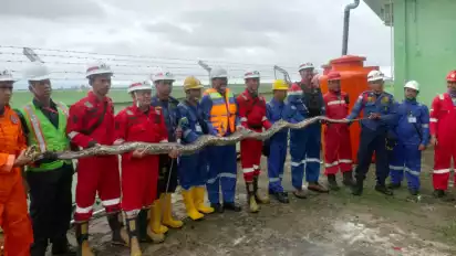 Ular Piton 5 Meter Nangkring di Dermaga Pertamina Pulau Bai Bengkulu