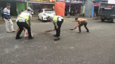 Pembersihan itu dilakukan langsung oleh personel Satlantas Polres Pagaralam, dan dibantu dengan masyarakat sekitar.