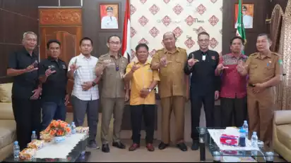 Langkat, Sumatera Utara - Sambut Hari Pers Nasional (HPN) ke 77 yang dipusatkan di Kota Medan, Persatuan Wartawan Indonesia (PWI) Kabupaten Langkat akan menyalurkan bantuan berupa seribu paket sembako kepada anak stunting dan ribuan paket sembako kepada keluarga pra sejahtera di Kabupaten Langkat. Hal ini disampaikan Ketua PWI Kabupaten Langkat, Darwis Sinulingga didampingi panitia HPN Kabupaten Langkat saat menemui plt Bupati Langkat, Syah Afandin di Kantor Bupati Langkat, Selasa (31/1/2023).