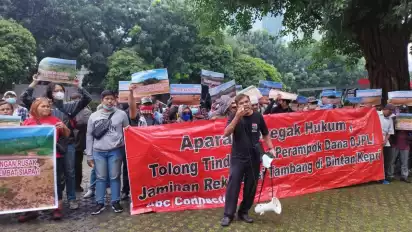 Jakarta, tvOnenews.com - Sejumlah massa yang tergabung dalam Koalisi LSM Kota Batam menggelar aksi unjuk rasa di Gedung Komisi Pemberantasan Korupsi (KPK) pada Rabu, 1 Februari 2023, untuk mendesak segera memproses laporan kasus dugaan  Korups Dana Jaminan Pengelolaan Lingkungan (DJPL) pasca tambang di Bintan tahun 2010-2016.