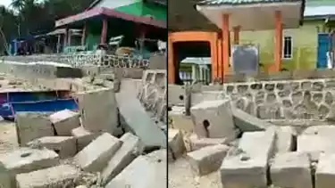 Beton Penahan Ombak Sepanjang 40 Meter di Bintan Rusak Dihantam Ombak