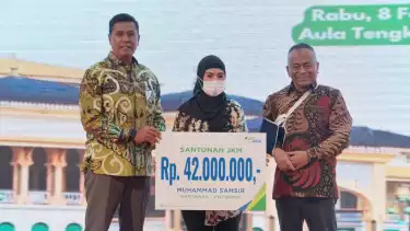 Dalam kesempatan tersebut BPJS Ketenagakerjaan menyerahkan manfaat Jaminan Kematian (JKM) senilai Rp42 juta kepada ahli waris dari salah satu anggota PWI yang meninggal dunia.