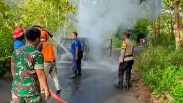 Melihat kondisi tersebut, lanjut Kusnan, pengemudi menghentikan mobilnya dan keluar minta pertolongan warga sekitar. Karena muncul kobaran api akhirnya salah satu warga menghubungi petugas pemadam kebakaran (Damkar).