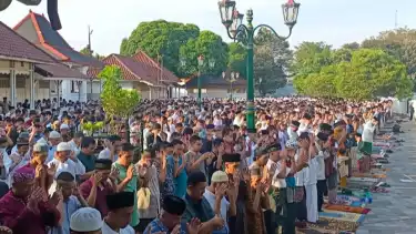 "Saya kira kalau shaf yang kita sediakan ini mungkin lebih dari dua ribu (jamaah), karena kita sampai di jalan-jalan tadi kita lihat, laporan yang kita terima," kata Takmir Masjid Gedhe Kauman Yogyakarta, Azman Latif saat ditemui usai Shalat Ied.