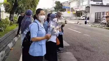 Aksi yang digelar di depan Kantor Dinas Pendidikan Pemuda dan Olahraga DIY juga dilakukan dengan membagi-bagi bunga kepada warga serta pengguna jalan.