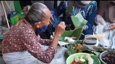 Salah satu pembeli yakni Bimo, wisatawan asal Jakarta yang penasaran karena Lopis Mbah Satinem begitu viral di berbagai medsos.