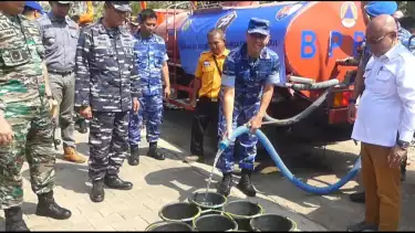 Gunungkidul, tvOnenews.com - Memperingati HUT TNI ke 78, tiga matra TNI yakni Korem 072 Pamungkas Yogyakarta, Lanud Adisucipto, Lanal Yogyakarta, serta Polda DIY, melakukan droping air bersih di Kapanewon Semanu, Gunungkidul. Sesuai dengan usianya yang sudah 78 tahun, jumlah tanki air yang disalurkannya pun berjumlah 78 tanki, atau 390 ribu liter air bersih.