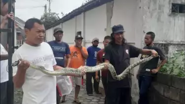 Sleman, tvOnenews.com - Seekor ular sanca ditemukan warga di sebuah proyek pembangunan kos-kosan di Dusun Mejing Kidul, Kabupaten Sleman, Daerah Istimewa Yogyakarta (DIY), Rabu (29/11/2023).