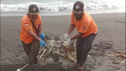 "Sekitar pukul 15.30 WIB, personil piket yang sedang patroli rutin menerima informasi dari pemancing yang menemukan ada penyu terdampar dalam kondisi mati di sebelah barat Pantai Congot," jelas Aris.