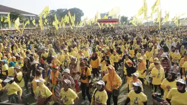 Bantul, tvOnenews.com - Ketua Umum DPP Partai Golkar, Airlangga Hartarto mengikuti acara senam bersama puluhan ribu kader dan simpatisan partai Golkar DIY di lapangan parkir selatan Jogja Expo Center (JEC), Minggu (24/12/2023) pagi. Usai mengikuti senam, Airlangga Hartarto memberikan komenter mengenai debat cawapres Gibran Rakabuming Raka. Menurutnya, Gibran sangat teknokratis dan sesuai dengan karakter kader Partai Golkar.