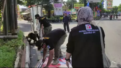 Langgar Aturan dan Bahayakan Pengguna Jalan, Bawaslu Sleman dan Satpol PP Tertibkan Ratusan APK