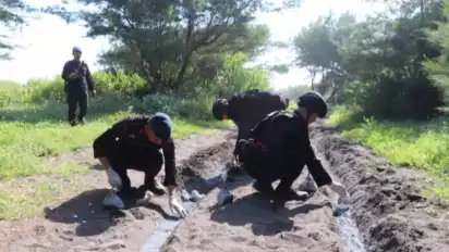 Bantul, tvOnenews.com - Tim Gegana Brimob Polda Daerah Istimewa Yogyakarta (DIY) bersama Kepolisian Resor Bantul memusnahkan puluhan kilogram bubuk mesiu bahan petasan atau mercon di kawasan Pantai Depok, Parangtritis, Kecamatan Kretek, Bantul, Jumat (26/4/2024).