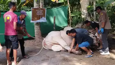 Kulon Progo, tvOnenews.com - Sapi kurban pemberian Presiden RI, Joko Widodo yang bernama Satrio Bimo untuk Masjid Al Huda di Dusun Pringtali, Kalurahan Jatimulyo, Kapanewon Girimulyo, Kabupaten Kulon Progo telah disembelih hari ini.