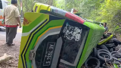 Kecelakaan tersebut diduga karena sopir tidak hafal medan jalan sehingga kendaraan hilang kendali.