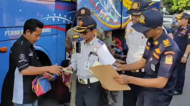 Pemeriksaan meliputi kelengkapan surat-surat, administrasi seperti uji KIR dan operasional, fisik kendaraan, hingga kesehatan pengemudi. Petugaspun nampak melakukan pengecekan terhadap fungsi lampu sein, klakson, hingga wiper.
