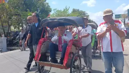 Datang Naik Becak Diiringi Rebana, Marija-Yusron Daftar Pilkada Kulon Progo 2024