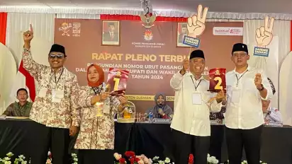 Sleman, tvOnenews.com - Nomor urut pasangan calon bupati (cabup) dan calon wakil bupati (cawabup) Sleman resmi ditetapkan oleh Komisi Pemilihan Umum (KPU) setempat, Senin (23/9/2024). Pengundian nomor urut dimulai sekira pukul 09.00 WIB.
