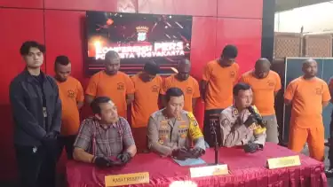 "Mereka telah kami amankan di beberapa tempat di wilayah Yogyakarta. Ada tiga yang menyerahkan diri, dua ditangkap di kediaman dan dua ditangkap di Fajar Timur Yogyakarta," kata Aditya saat rilis kasus di Polresta Yogyakarta, Selasa (29/10/2024).