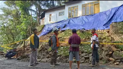 "Awalnya ada hujan deras sekitar jam 7 malam. Posisi saya masih di dalam sini baru ngaji sehabis magrib terus mendengar suara seperti kayu bengkah atau patah. Setelah itu, saya pergi ke belakang terus saya nengok keluar (talud) sudah ambrol," kata Suminto, Selasa (12/11/2024).