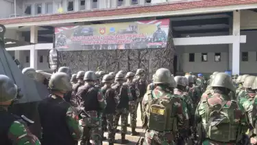 Pasukan bergerak dari Markas Batalyon Infanteri (Yonif) Mekanis 403/WP menuju titik kumpul di Stadion Mandala Krida.