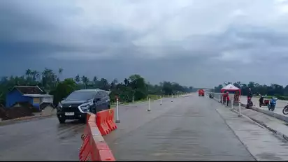 "Jadi masih ada sambungan yang belum halus, pembatas kiri dan kanan jalan ada yang belum terpasang guard rail. Sehingga, besok akan dipasang sementara water barier ataupun tolo-tolo sebagai pembatas," kata Widya.