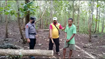 Mendapatkan laporan tersebut, lanjut Kapolsek, pihaknya melakukan pengecekan ke lokasi dan menemukan sejumlah barang bukti, berupa 2 potong kayu jati, gergaji tangan, sabit, dan dua utas tali plastik.