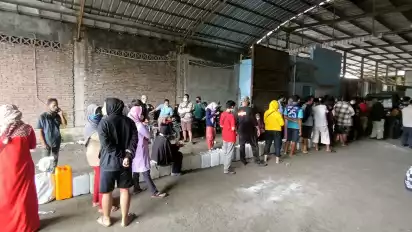 "Antre satu setengah jam. Kalau beli minyak saja gak boleh, gak tahu kenapa. Ya (beli) gandum apa gula gitu, seharga kurang lebih Rp 400 ribu. Saya kalau udah minyak satu jerigen sama gandum satu karung kan udah Rp 450an ribu," ujarnya kepada wartawan di lokasi distributor.
