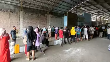 Sleman, DIY - Puluhan warga Sleman, Daerah Istimewa Yogyakarta harus mengantre untuk mendapatkan minyak goreng (migor) curah di salah satu distributor di wilayah Gamping, Jumat (25/3/2022).