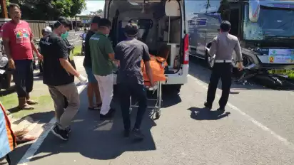 Bantul, tvOnenews.com - Kecelakaan lalu lintas dengan melibatkan bus pariwisata dan sepeda motor terjadi di Jalan Parangtritis Km. 26 tepatnya Tikungan Makam Gedhe, Dusun Grogol IX, Parangtritis, Kretek, Kabupaten Bantul, DI Yogyakarta pada Kamis (29/5/2025) pukul 10.35 WIB. Dalam insiden ini, pemotor dinyatakan tewas.