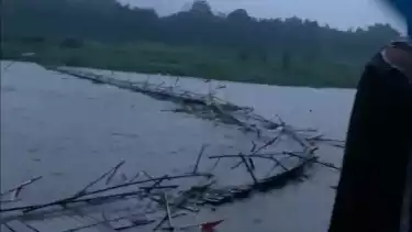 Dalam sebuah video, terekam jembatan yang terbuat dari bambu itu tak kuasa menahan derasnya arus Sungai Progo. Alhasil, jembatan yang berada di Dusun Temben, Kalurahan Ngentakrejo, Kapanewon Lendah itu roboh.