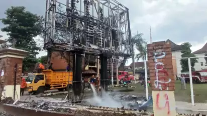 Mapolda DIY Dipenuhi Puing-Puing Sisa Demo, Damkar dan DLH Dikerahkan