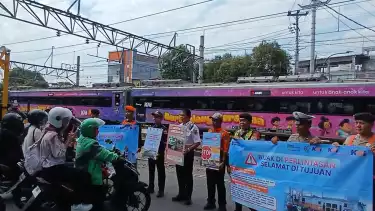 "Hari ini, kita melaksanakan sosialisasi keselamatan sebagai langkah kolaborasi bersama karena memang keselamatan di perlintasan sebidang merupakan tanggung jawab bersama," ucap Feni.