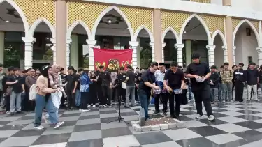 Sleman, tvOnenews.com - Keluarga besar Universitas Islam Indonesia (UII) Yogyakarta melakukan aksi tabur bunga di halaman Auditorium, Senin (6/9/2025) sore.