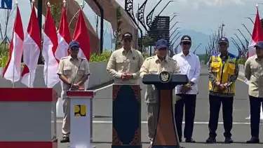 Bantul, tvOnenews.com - Presiden RI, Prabowo Subianto secara langsung meresmikan jembatan yang semula dikenal dengan Jembatan Pandansimo dengan nama baru Jembatan Kabanaran.