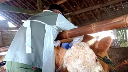 Berbagai langkah cepat penanganan pun dilakukan oleh pemerintah setempat. Salah satunya dengan mengambil sampel hewan ternak yang diduga terjangkit PMK, mulai dari cairan di hidung dan mulut maupun darah dari hewan tersebut.