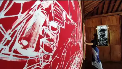 Setidaknya, ada 14 lukisan yang dibuat oleh dua perajin, yaitu Fikky Ananda dan Bayu Permadi. Lukisan bermotif pembunuhan, perjudian, hingga asmara dituangkan di kain batik dengan teknik batik tulis abstrak.