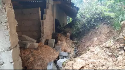 Rumah tersebut rusak berat dan sangat berbahaya untuk ditempati selama musim hujan berlangsung, sehingga keluarganya terpaksa mengungsi di rumah sauadaranya yang tak juah dari lokasi longsor.