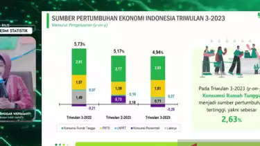 Menurutnya, sebenarnya kontribusi konsumsi rumah tangga terhadap sumber pertumbuhan pada kuartal III-2023 relatif lebih kecil dibandingkan kontribusi pada kuartal II-2023 lalu yang sebesar 2,77 persen (yoy) dan kuartal III-2022 yang sebesar 2,81 persen (yoy).