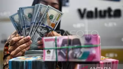 Setelah libur Lebaran 2024, rupiah terus tertekan imbas penguatan indeks dolar AS. Kekhawatiran terhadap memanasnya kondisi geopolitik di Timur Tengah, membuat pelaku pasar menghindari negara berkembang, dan beralih ke instrumen yang dianggap paling aman atau safe haven. (ant)