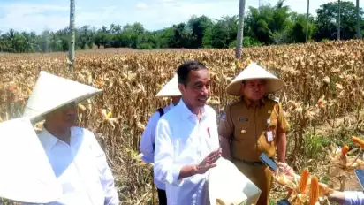 "Produksi jagung kita terus meningkat. Terkait dengan harga, tahun lalu bisa mencapai Rp8.000/kilogram," ujar Presiden Jokowi.