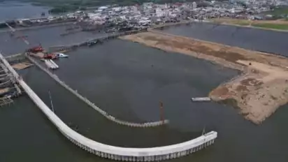 Kebutuhan benteng laut tersebut semakin mendesak karena permukaan tanah di kawasan pesisir juga terus tergerus.