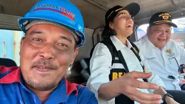"Pak Zohar agak grogi katanya, belum pernah ada Menteri Keuangan duduk di sebelahnya naik truknya," ujar Sri Mulyani.