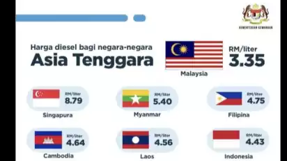 Bahkan, untuk kendaraan angkutan umum darat (kategori SKDS 1.0) seperti bus sekolah, ambulans, dan pemadam kebakaran, harga solar justru lebih murah yakni hanya 1,88 ringgit Malaysia, atau sekitar Rp6.500 per liter.