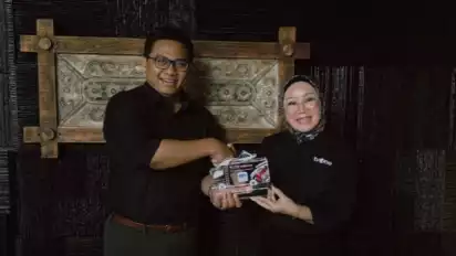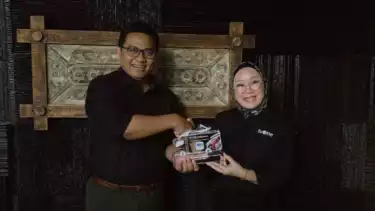 Penyerahan plakat penghargaan diberikan oleh Direktur Business Marketing/Sales & Programming tvOne Ibu M. G. Limi kepada Bapak Roma Jaka Permata Simanjuntak Selaku Division Head of Marcom BRI.