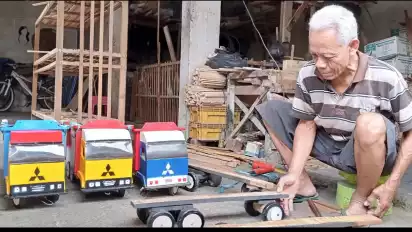 Perajin miniatur truk kayu di Kabupaten Kudus, Jawa Tengah hanya bisa pasrah kala pandemi virus corona melanda karena tak bisa berjualan selama dua tahun akibat pandemi Covid-19. Kini mereka mencoba bangkit dengan memproduksi kembali miniatur truk.