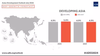 Proyeksi pertumbuhan ekonomi negara berkembang di Asia Pasifik justru dinaikkan dari perkiraan sebelumnya sebesar 4,9 persen menjadi 5,0 persen, seiring dengan meningkatnya ekspor di kawasan dan kuatnya permintaan domestik. Sedangkan untuk tahun 2025, ekonomi Asia Pasifik diperkirakan tetap bisa tumbuh hingga 4,9 persen.