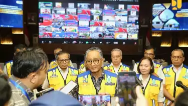 Jakarta, tvOnenews.com - Menyambut Hari Raya Natal 2024 dan Tahun Baru 2025 (Nataru), Menteri Pekerjaan Umum (PU) Dody Hanggodo didampingi Wakil Menteri PU Diana Kusumastuti melakukan Monitoring Kesiapan Infrastruktur PU Mendukung Kesiapsiagaan Bencana dan Nataru 2024/2025, secara daring, di Auditorium Kementerian PU, Selasa (24/12/2024).