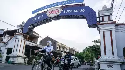 Buruh mengendarai sepeda keluar dari pabrik PT Sri Rejeki Isman Tbk (Sritex) di Sukoharjo, Jawa Tengah