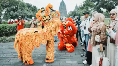 "Pertunjukan ini diadakan di area Marga Utama dan Kampung Seni Borobudur di TWC Borobudur, serta di area concourse TWC Prambanan. Para pengunjung tampak antusias menikmati atraksi dan memberikan angpao kepada Barongsai," kata Ratno Timur. (ant/nsp)